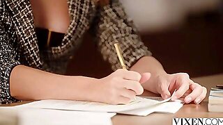 Penny Pax shares a big cock with her friend in an intense scene.