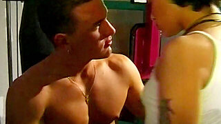 Busty raven tries anal sex at the gym with a younger male