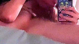 Beautiful 90s brunette with big boobs masturbates pussy and does classic blowjob