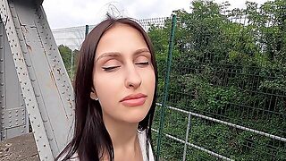 Public cumwalk with stranger for large sum, super-sexy bare hoe blowing schlong in front of crowd, dirty