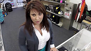 Busty milf kneels and deepthroats cock and gets fucked in exchange of cash