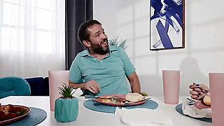 Thin babe shared by her stepmom and her new boyfriend in a thrilling threesome